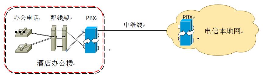 安装使用者小程控交换机,将所有办公电话连接到小程控交换机上,实现内部电话的交换,同时实现内部通话免费,内部小程控交换机通过中继线与公网连接。
